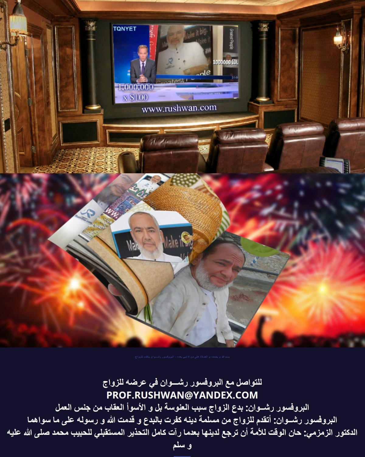 https://i.suar.me/20QE9/l بسم الله و بحمده و الصلاة على من لا نبي بعده - البروفسور رشـــوان يتقدم للزواج للتواصل مع البروفسور رشـــوان في عرضه للزواج [email protected] البروفسور رشــوان: بدع الزواج سبب العنوسة بل و الأسوأ العقاب من جنس العمل البروفسور رشــوان: أتقدم للزواج من مسلمة دينه كفرت بالبدع و قدمت الله و رسوله على ما سواهما الدكتور الزمزمي: حان الوقت للأمة أن ترجع لدينها بعدما رآت كامل التحذير المستقبلي للحبيب محمد صلى الله عليه و سلم النظر للزواج بغير ماكان ينظر له ****** محمد صلى الله عليه و سلم و الصحابة و الصحابيات بتعاليم من الله عز وجل هو ما جعل الزواج مشكلة و ليس حل فالأمة بأجيالها التي فشلت جيل بعد جيل بالإعراض عن تعاليم الله "الذكر" اصبحت في أغلب نواحيها معيشتها ضنكاً و بالطبع مع ضياع العلم "بقبض العلماء" إما بالموت او السجن أو التصفية أصبحت الأمة بالفراخ الدايخة تتمسك بما بقى في ذاكرتها الطيبة من الخير ادباً لا فقهاً فالأمر بإنكاح الايامى و الصالحين لا يطبق فتجد الملايين الآن بدون زواج وَأَنكِحُوا الأَيَامَى مِنْكُمْ وَالصَّالِحِينَ مِنْ عِبَادِكُمْ وَإِمَائِكُمْ إِنْ يَكُونُوا فُقَرَاءَ يُغْنِهِمُ اللَّهُ مِنْ فَضْلِهِ وَاللَّهُ وَاسِعٌ عَلِيمٌ فالفقر لم يكن أبداً كما يظن من حادوا بالأمة إلى درب الهلاك الدنيوي مانعاً ابداً للزواج فالزواج ليس للمال بل لمشاركة المسكن تحت طاعة الله و بكلمة "قد قبلت" أمام الشهود - هل هناك ابسط من ذلك لإستجلاب البركة للحلال و الأمر بالإصلاح بين الزوجين لا يطبق بحجة المحايدة - لا حجة فوق حجة الله وَإِنْ خِفْتُمْ شِقَاقَ بَيْنِهِمَا فَٱبْعَثُواْ حَكَماً مِّنْ أَهْلِهِ وَحَكَماً مِّنْ أَهْلِهَآ إِن يُرِيدَآ إِصْلَٰحاً يُوَفِّقِ ٱللَّهُ بَيْنَهُمَآ و بالتالي يخاف المقبلين على الزواج من خطأ الإختيار و لا يأمنون من يصلح الأمور لو جار احدهم على الآخر و خاصة من الرجل "لا حول و لا قوة إلا بالله" فتخرج المرأة كل أسلحتها من قبل الشقاق غباءً فيحدث الشقاء - إنها الإستجابة للشيطان لمجرد عدم إئتمان المجتمع في القيام بواجبه في أمره تعالى إِنَّمَا الْمُؤْمِنُونَ إِخْوَةٌ فَأَصْلِحُوا بَيْنَ أَخَوَيْكُمْ ۚ وَاتَّقُوا اللَّهَ لَعَلَّكُمْ تُرْحَمُونَ وهذا الأمر للإصلاح بين الأهلين إن إختلفوا في الإصلاح بين الزوجين في آية الشقاق و بالتالي خذلت الأمة الإسلامية نفسها في رعاية نفسها فإذ بالزواج أصبح مغامرة غير محسوبة فاتحاً الباب للأسوأ و العياذ بالله و إذ حتى بالعقود التجارية بها من الإشتراطات لتأمين الطرفين اكثرمن إشتراطات التنفيذ و تقنيات معايير التوريد للمتفق عليه حتى الأمة فقدت سلامة تحويل الأموال بينها و السبب واحد - الإعراض عن أوامر الله و ليتهم لديهم بديل فعال و لن يكون- لا بديل فعال عن الحلول الإلهية العبقرية ناهيكي عن إضافة كل حرام للزواج فيصبح الحرام نفسه أقل حراماً من الزواج كسر باغي الحلال بمتطلبات لم يأمر بها الله ولا ****** محمد صلى الله عليه و سلم أَسْكِنُوهُنَّ مِنْ حَيْثُ سَكَنتُم مِّن وُجْدِكُمْ فما يرضى لنفسه من سكن فلتسكن معه لا زيادة و لا نقصان و لا متطلبات التمس ولو خاتما من حديد فقد شرع الله تعالى النكاح استجابة لنداء الفطرة وصيانة للأخلاق لا للتربح و بالتالي تجد غلو المهر إما لربط المغفل قبل أن يكتشف علاقتها السابقة - اللهم عافي اعراضنا و أعراض المسلمين أو لتأخذ أموال كافية تحسباً لقرار تركه له - أليس ستتركه ايضاً - و لكنها الأنانية الشخصية التي دمرت الأمة من الداخل و السبب واضح - الإعراض عن ذكر الله " أوامره" و بالتالي المعيشة الضنك التي رايتها في كل أنحاء الأمة أثناء سفري و تنقلي للبدء من الصفر تنفيذا لإستراتيجياتي لشباب او شابات المسلمين كمثال حي من نفسي قصة القنطار ﴿ وَآتَيْتُمْ إِحْدَاهُنَّ قِنْطَارًا فَلَا تَأْخُذُوا مِنْهُ شَيْئًا ﴾ هذا ما حصلت عليه خلال طول حياة زوجية حلالً و هبة ثم حدث طلاق و ليس المهر لأن ال